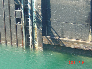 This is how the ship looks as to height when it leaves the locks. Notice how much more of the ship can be seen above water than in the first photo.